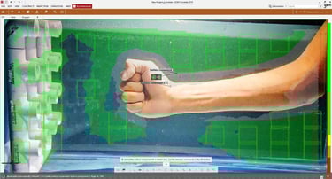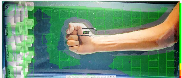 Con el análisis GOM proporcionó mediciones detalladas que visualizan áreas con mayores o menores cambios (micro-deformaciones) en la superficie de la mano y parte del antebrazo.