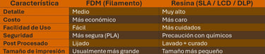 Relativamente lenta en comparación con otras tecnologías como SLA, pero suficiente para prototipos y piezas funcionales.