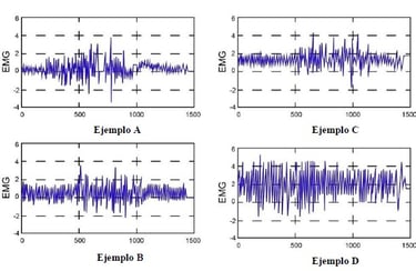 Ilustración que ejemplifica las señales mioeléctricas de diferentes usuarios.