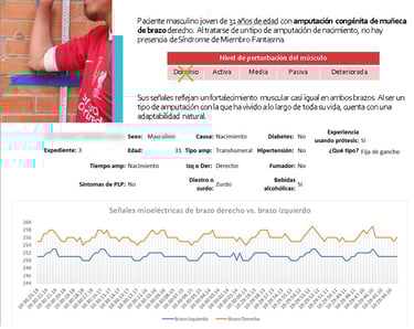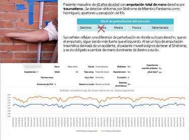 El presente estudio pretende demostrar en un grupo de pacientes con amputación de miembro superior, que sus señales electromiográficas (EMG) son diferentes entre su brazo sano y su brazo con amputación.