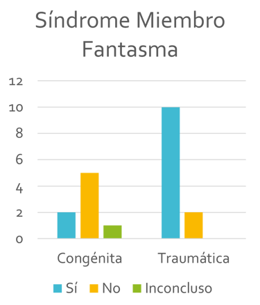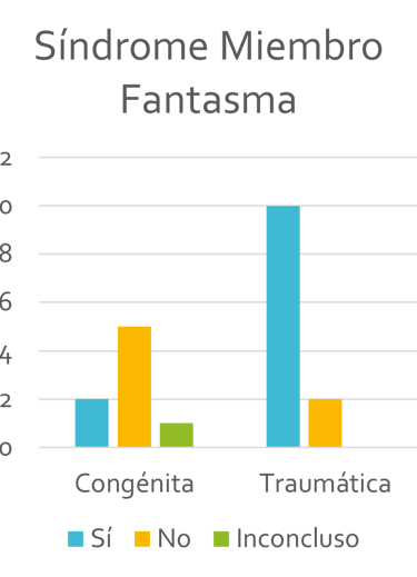 • Se identificó la presencia de Síndrome de Miembro Fantasma, y el cómo es frecuente en amputaciones traumáticas. Se reconoció que el Síndrome es casi nulo en amputaciones congénitas.