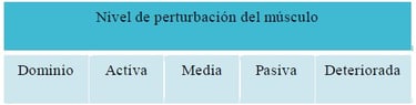 Se diseñó una escala de perturbación de músculo durante la prueba de recopilación de señales mioeléctricas que brindó parámetros fundamentales para el presente estudio: evaluación de respuesta muscular y tensión del músculo y articulaciones.